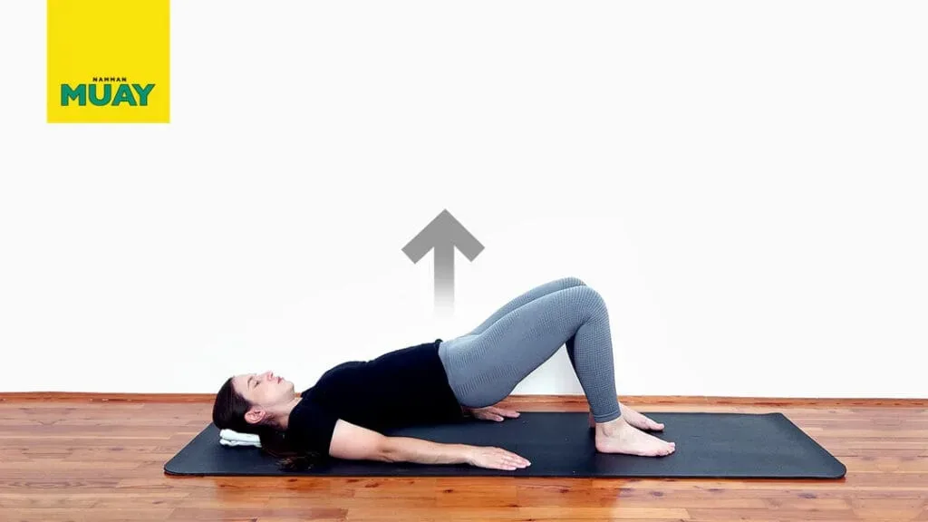 Ruke stavite uz tijelo, a zatim podignite bokove tako visoko da trup bude potpuno izravnan, a potom ih polako spustite natrag prema tlu.