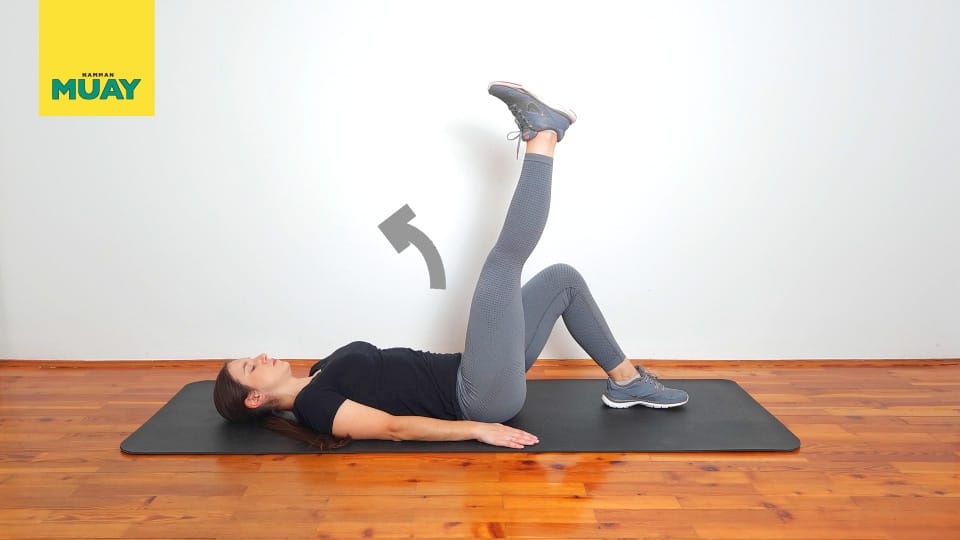 Podignite ispruženu nogu dok ne dosegne visinu savijenog koljena.